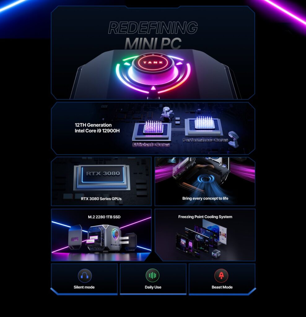 كمبيوتر مكتبي للالعاب من رايفورا، i9 12900H حتى 5.0GHz، RTX 3080 16GB، كمبيوتر العاب صغير 32GB DDR5 1TB NVMe SSD