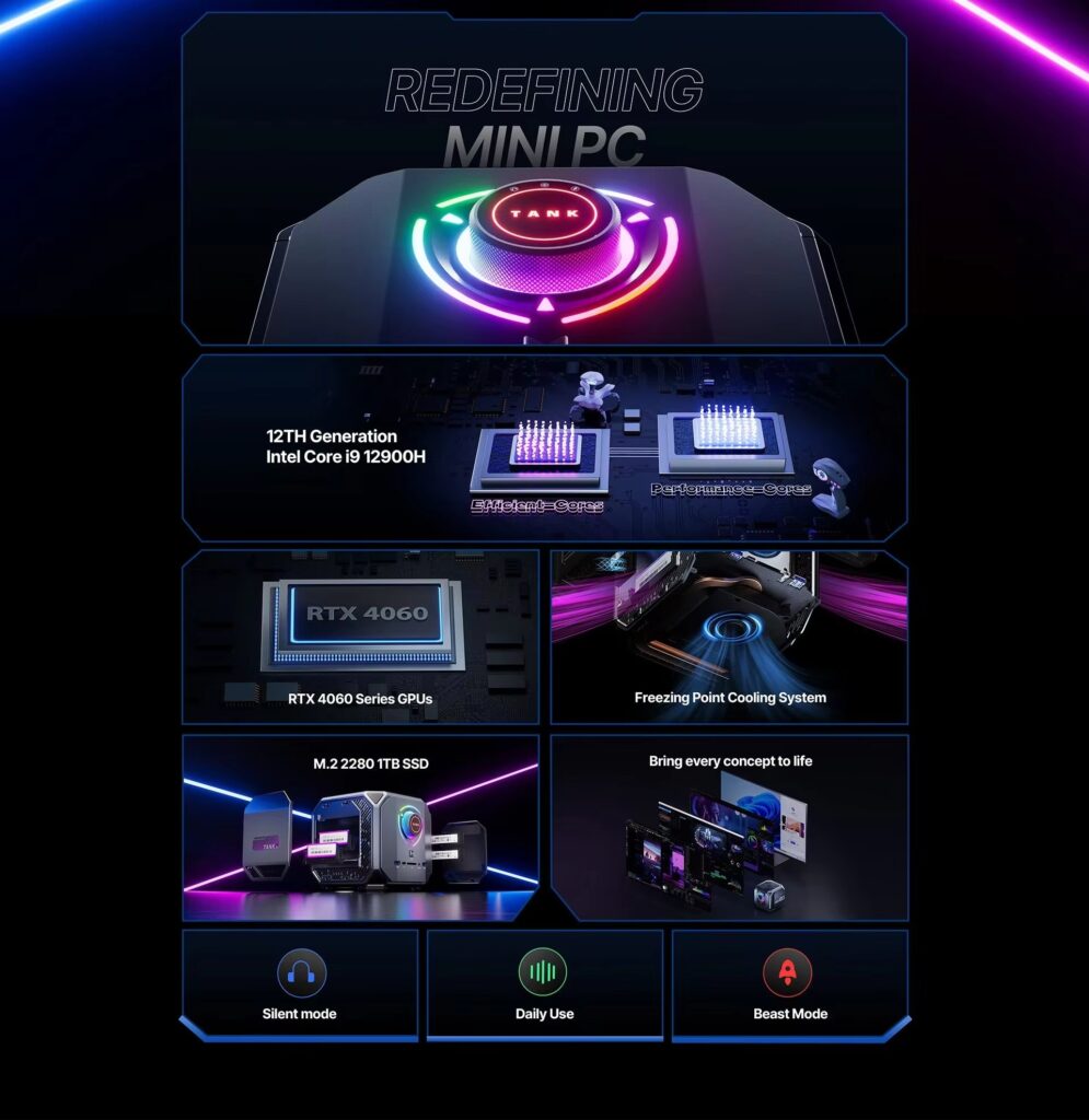 كمبيوتر مكتبي للالعاب من رايفورا، i9 12900H حتى 5.0GHz، RTX 4060 8GB، كمبيوتر العاب صغير 32GB DDR5 1TB NVMe SSD